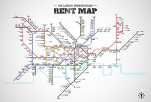 A londoni metróhálózat térképének egy új változata készült el, amely megmutatja, hogy az egyes megállók környékén mennyibe kerül átlagosan a lakásbérlés Londonban.